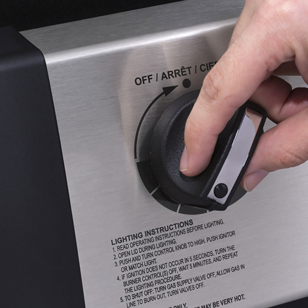 - Heat Control: Linear-Flow™ valves offer precision temperature adjustments, while the Accu-Temp™ thermometer monitors grilling conditions.