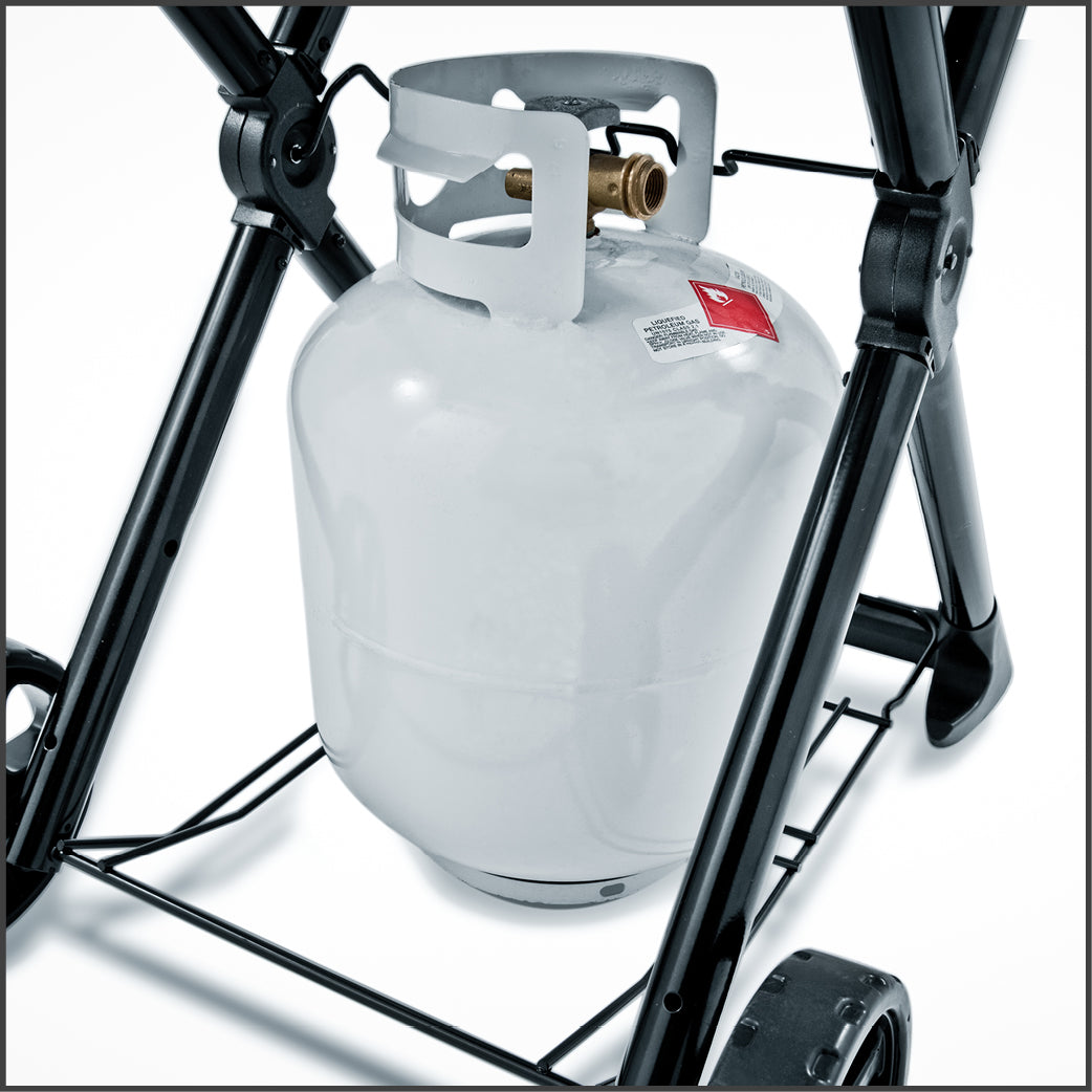 - Propane (LP): Designed for use with 5, 10, or 20 lb. tanks (not included).