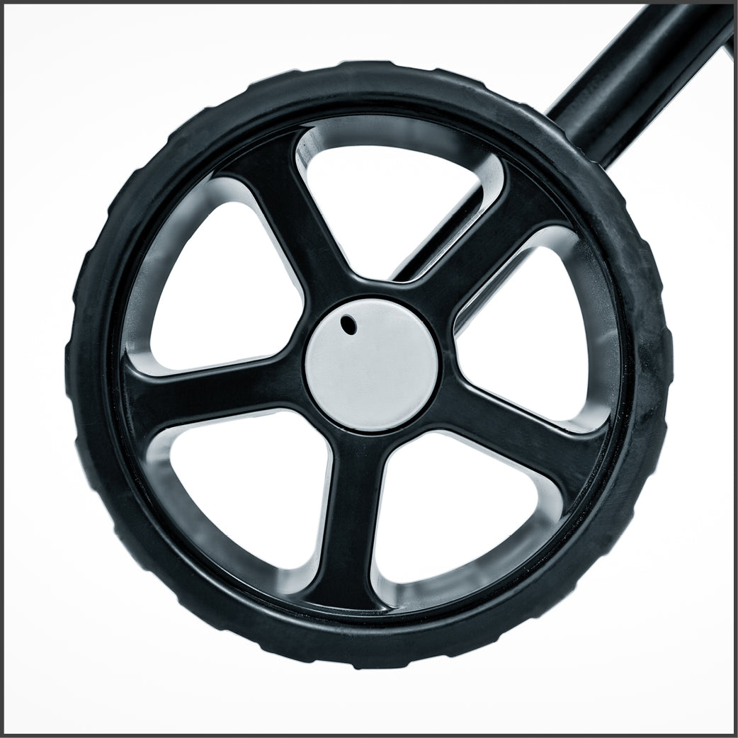 - Portability: Snap-in spring-assisted X-frame and rubber-coated wheels for easy transport and storage.