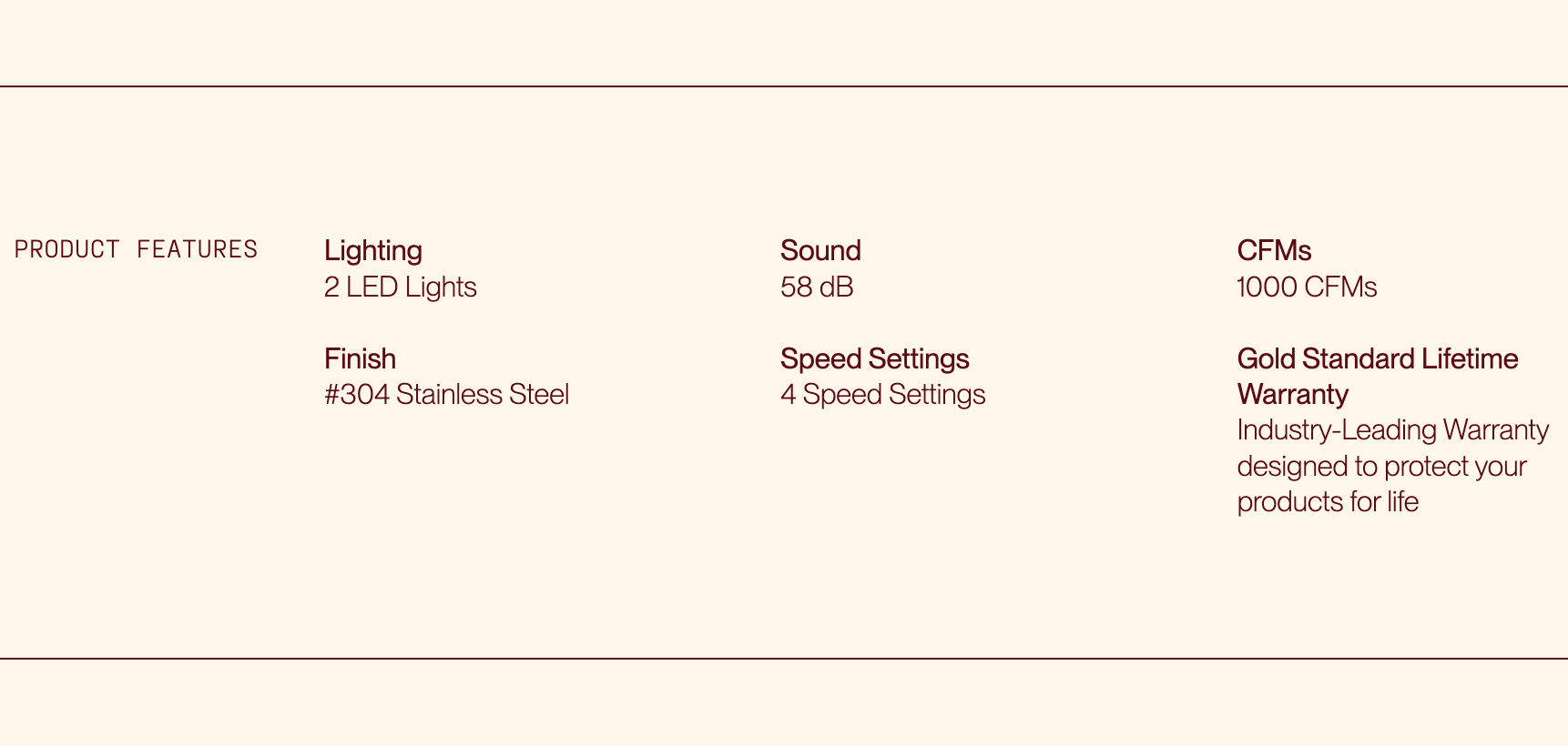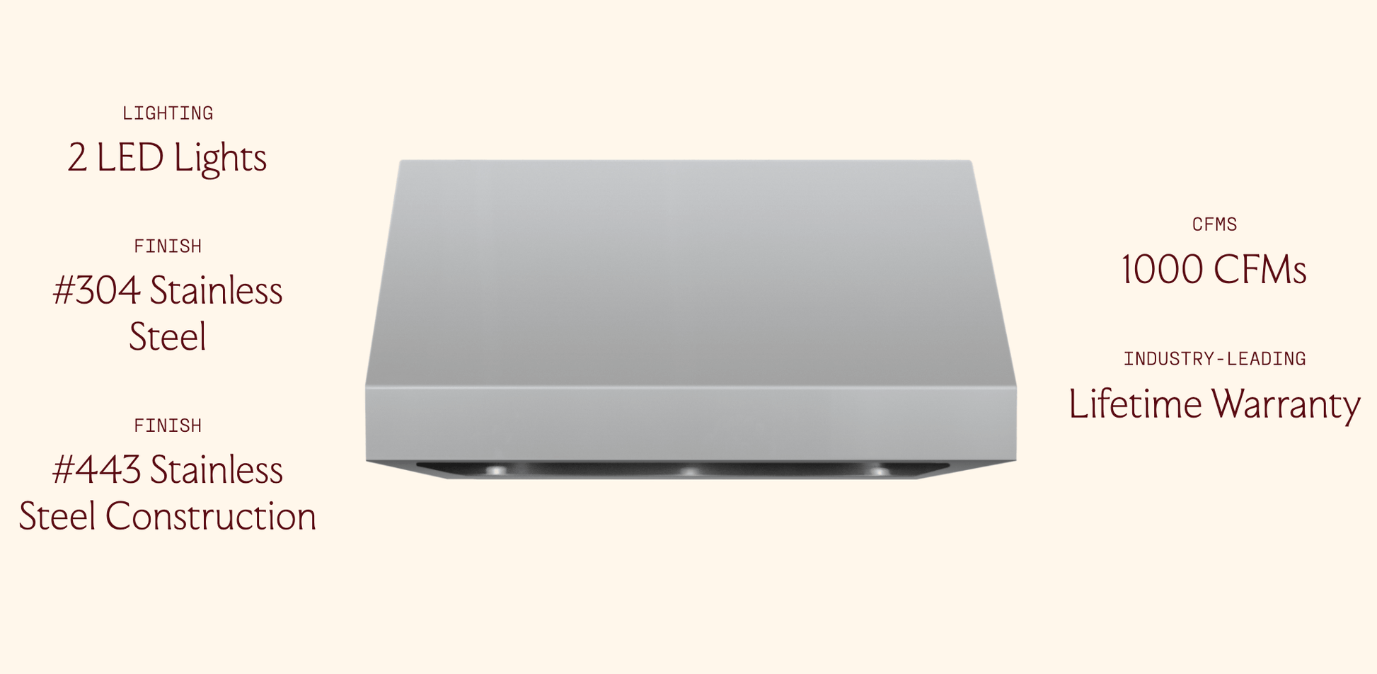 - Powerful 1,000 CFM Single Motor efficiently removes heat, smoke, and odors