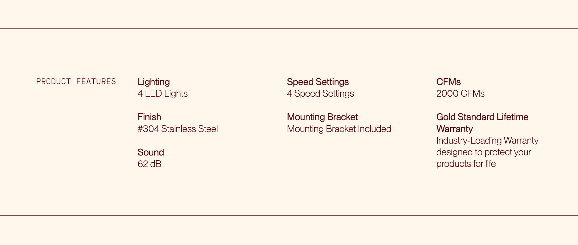 - Warranty: Gold Standard Lifetime Warranty